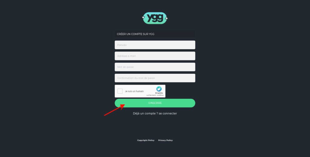 - Rendez-vous à l’adresse URL : https://www.ygg.re/auth/register